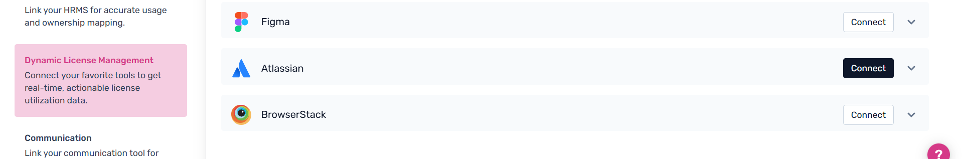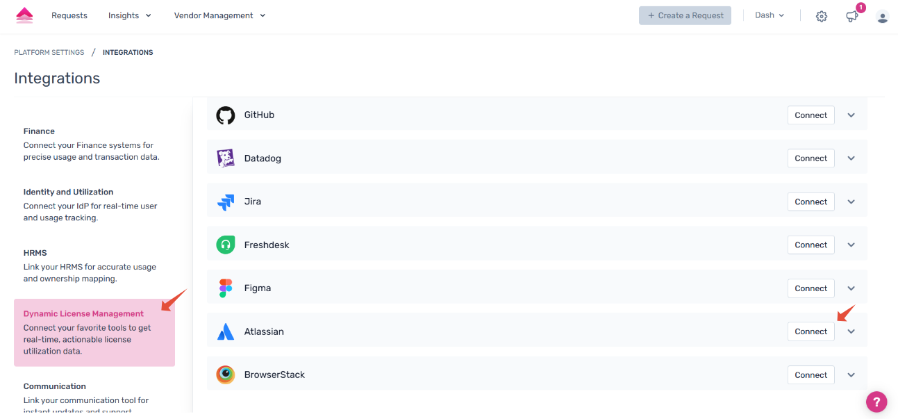 2. Find Atlassian under 'Dynamic License Management' & click 'Connect' to start the integration