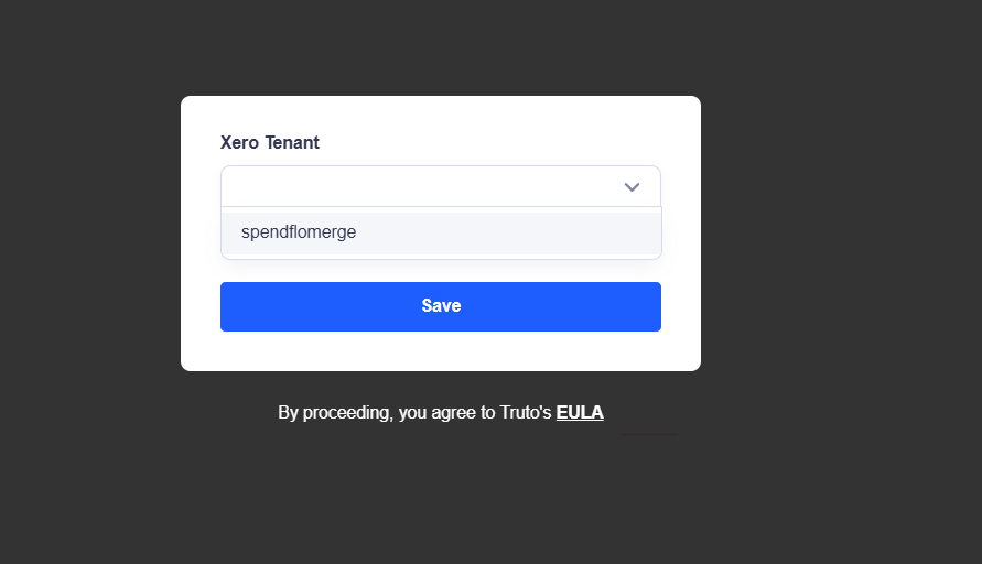 Step 7. This will be redirected back to the Spendflo platform. Choose a Xero Tenant to proceed, and click “Save” once done.