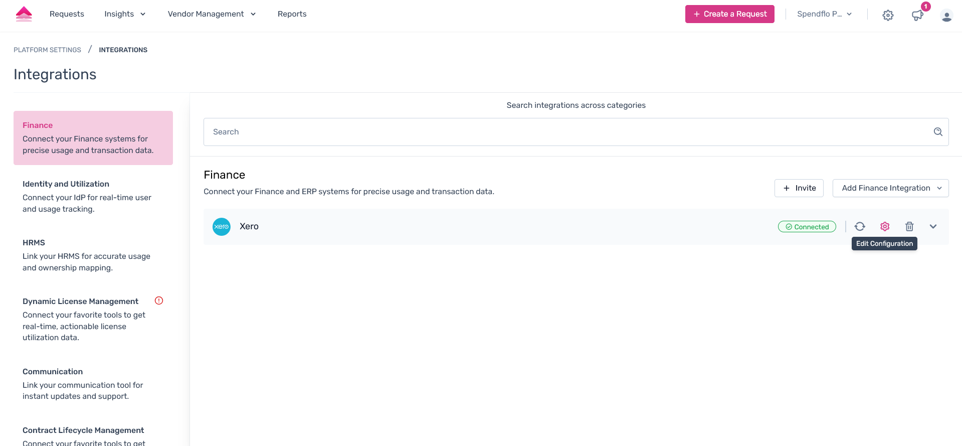 Step 1. Once the integration steps are completed, locate the Xero integration and click on the Edit Configuration icon to proceed with the configuration.