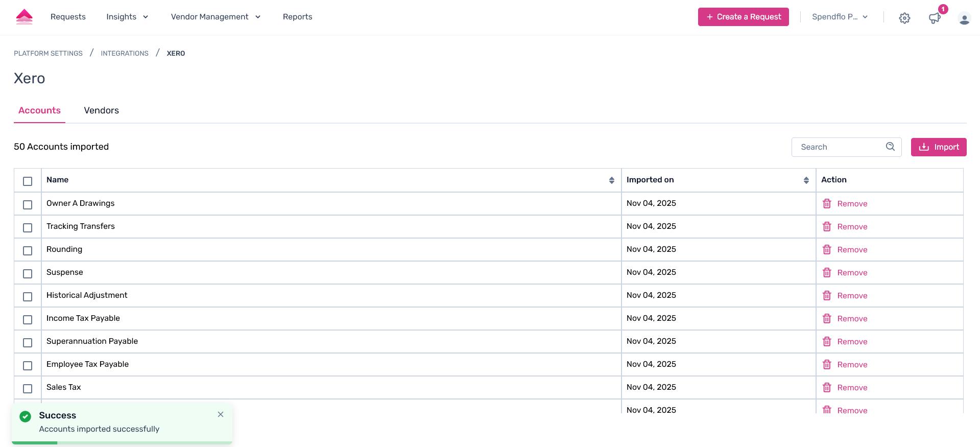 The accounts will seamlessly be imported successfully into the Spendflo platform from your Xero account.