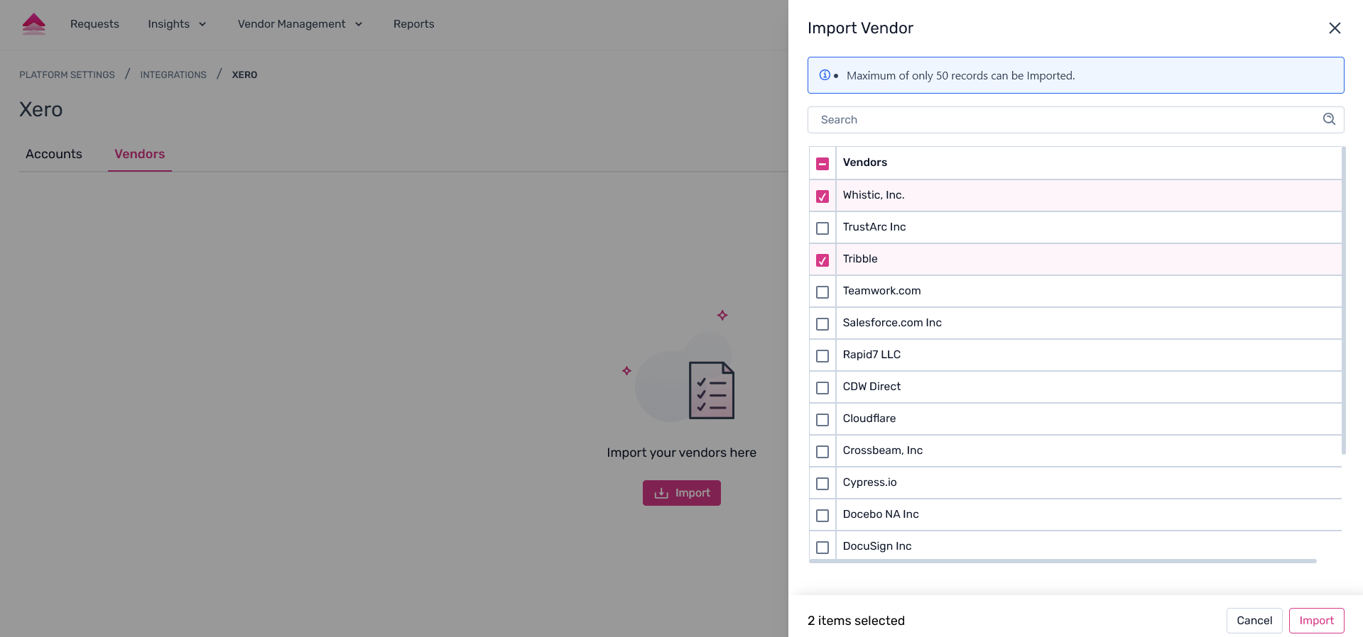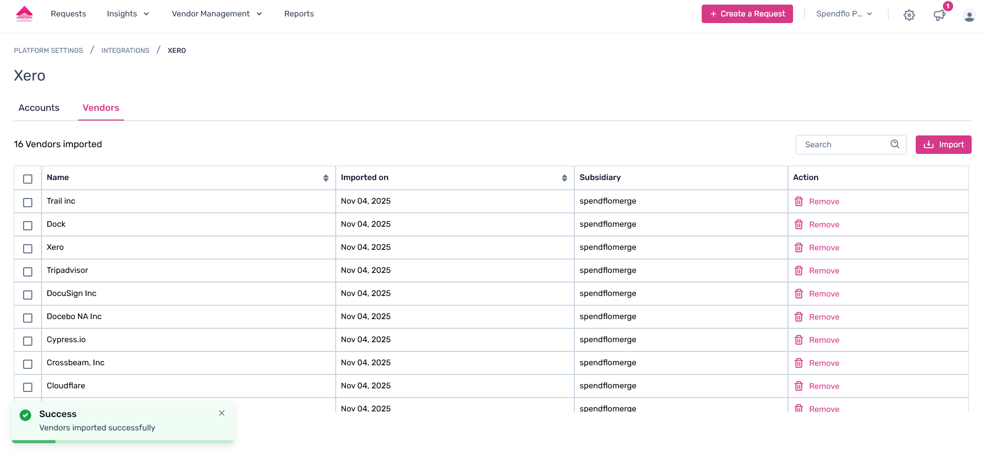 The vendors will seamlessly be imported successfully into the Spendflo platform from your Xero account.