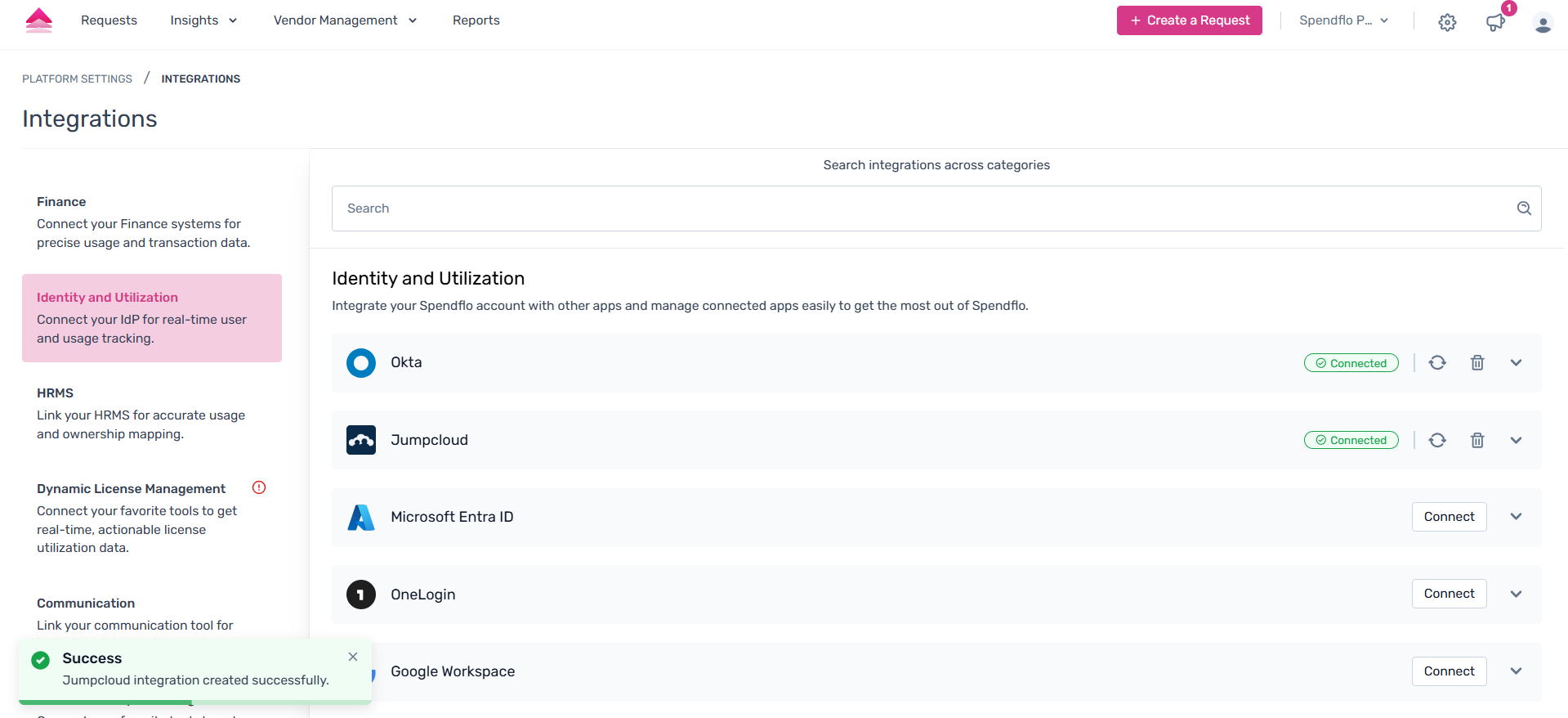 Spendflo integrates with Jumpcloud and syncs the list of apps and its users. It gets the usage details of your entire SaaS stack integrated with JumpCloud.