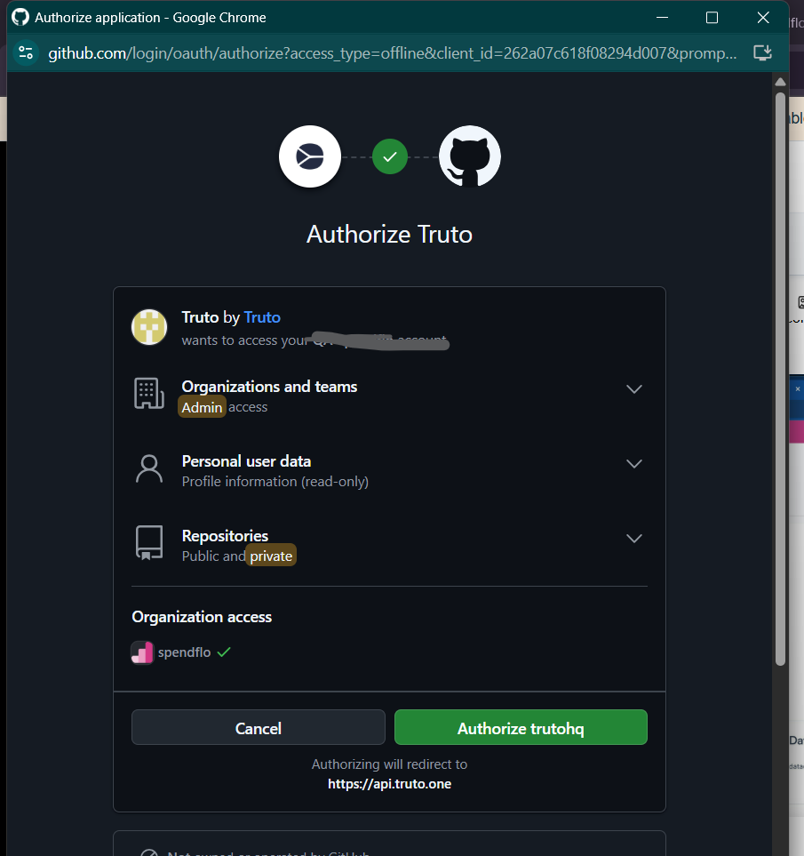 In the next screen, you'll see the access API authorization that will be required to complete the GitHub integration. Review and authorize the app.