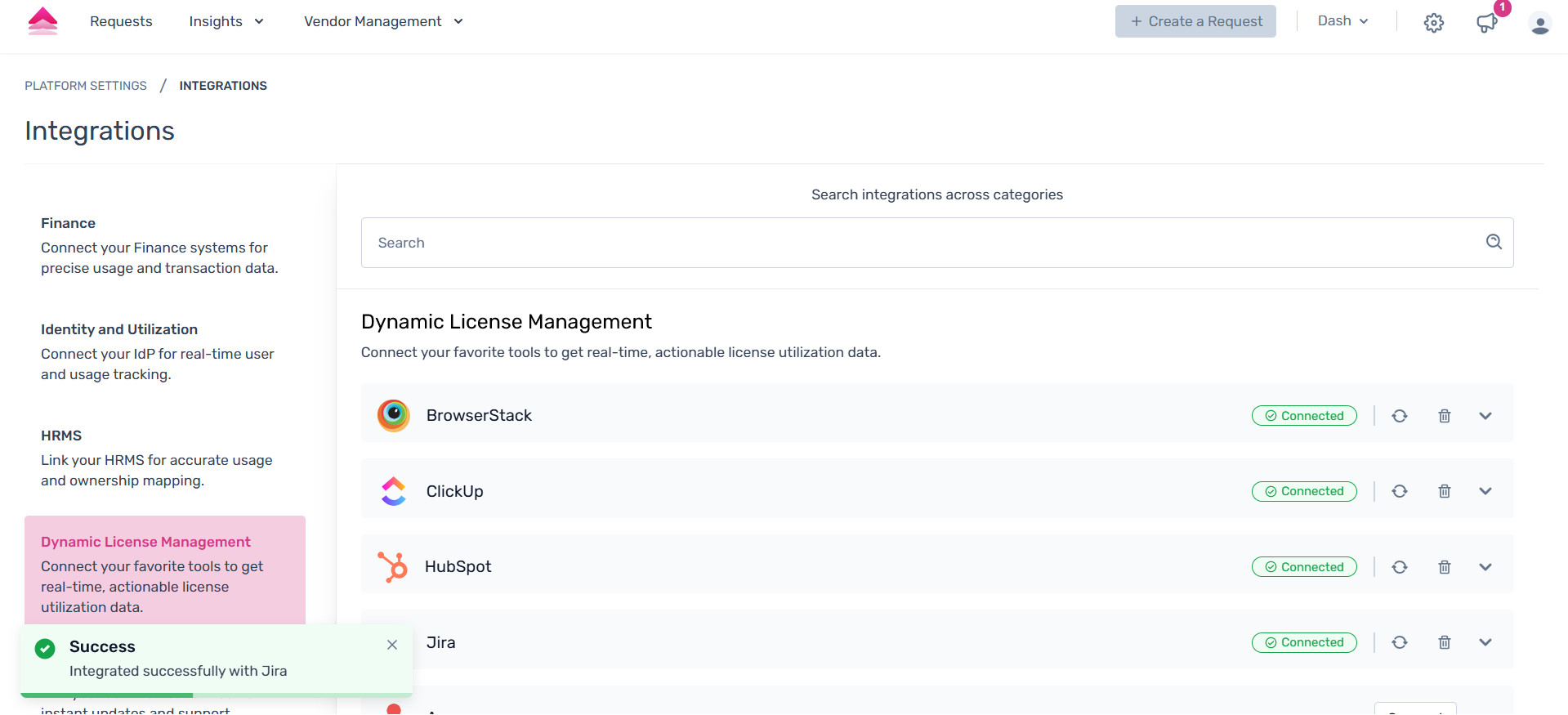 Spendflo seamlessly integrates with Jira, offering you a comprehensive view of license usage, empowering you with de-provisioning features, and facilitating savings from inactive licenses—all conveniently within the Spendflo app. This integration streamlines your Jira experience, eliminating the need to switch between various instances. With Spendflo, you can exercise complete control over your Jira and other app environments, all from a single, unified platform.