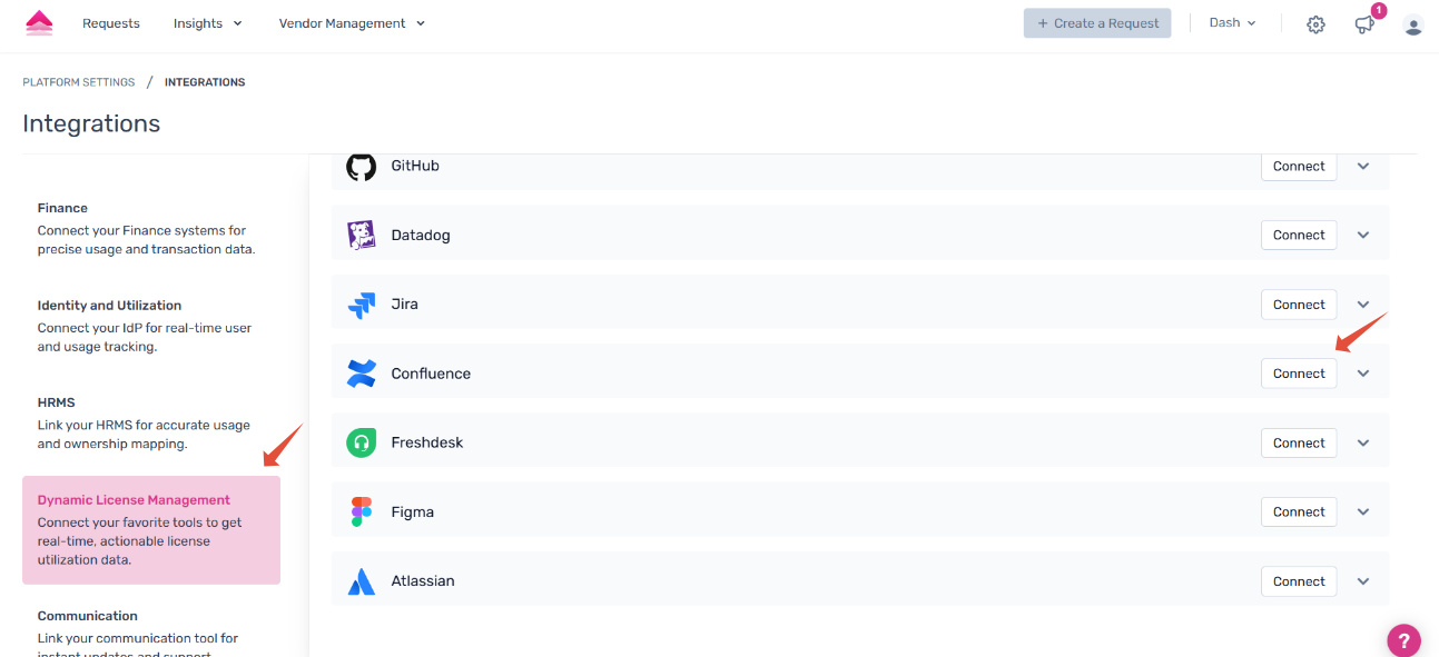2. Login to your Confluence Account, if not already logged in. Navigate to Confluence under Dynamic License Management and click Connect