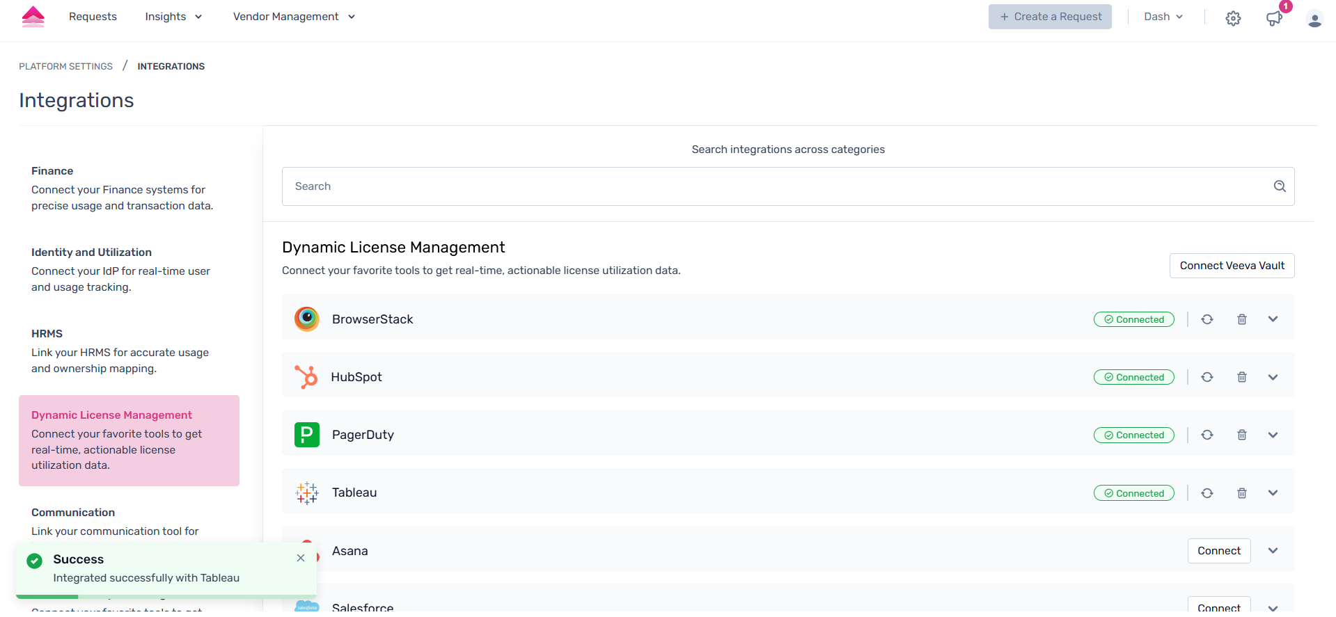 8. Integration is completed with Tableau & will now start populating the licenses page.