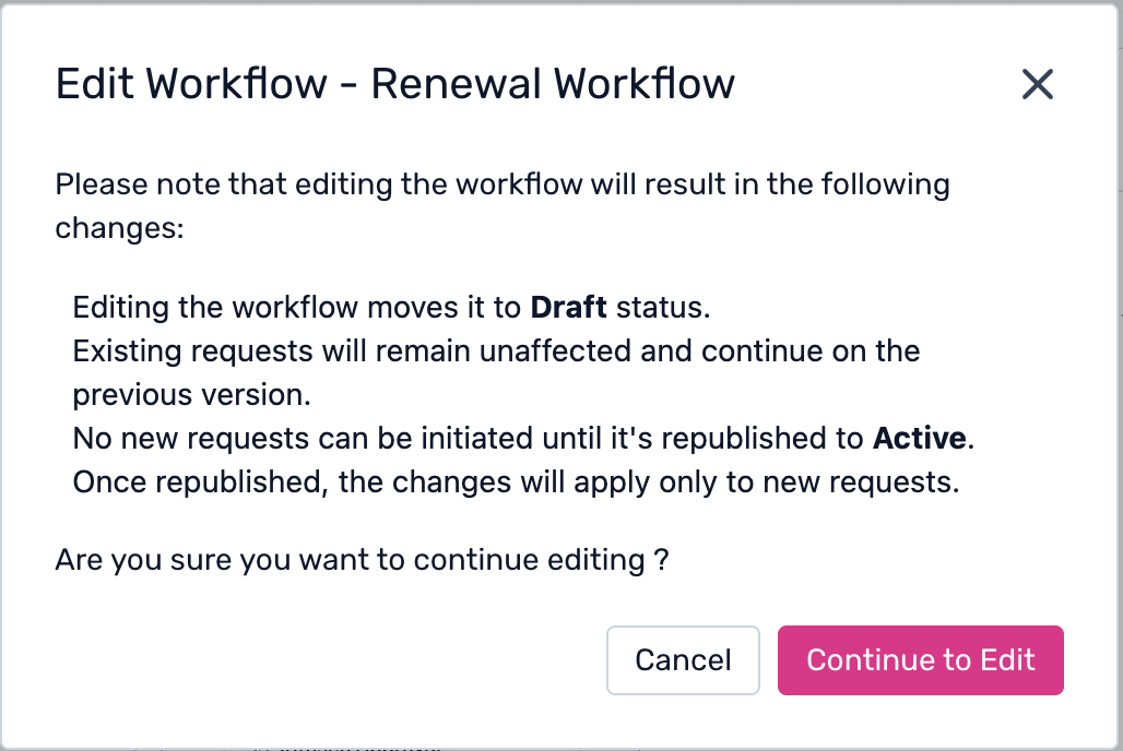 Note: The workflow status is not manually editable. It updates automatically based on the real-time state of the workflow within the platform.