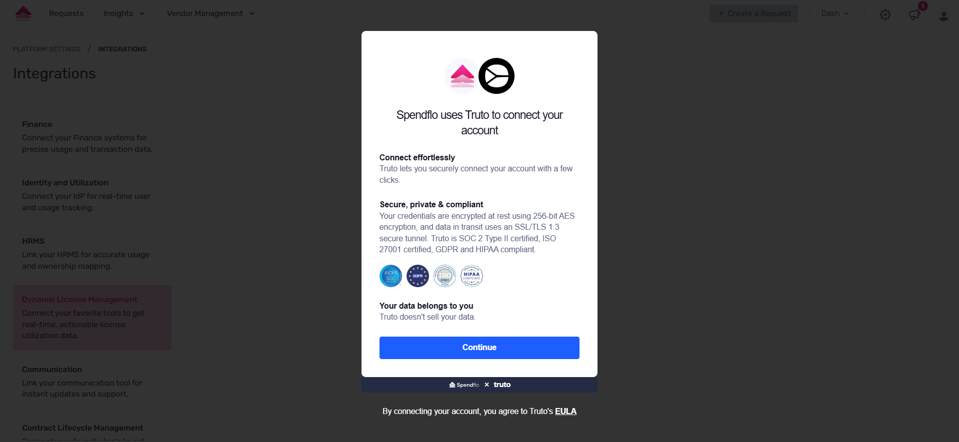 Step 3. Spendflo uses Truto to securely connect your Salesloft account. Click on Continue → Connect to complete the connection.