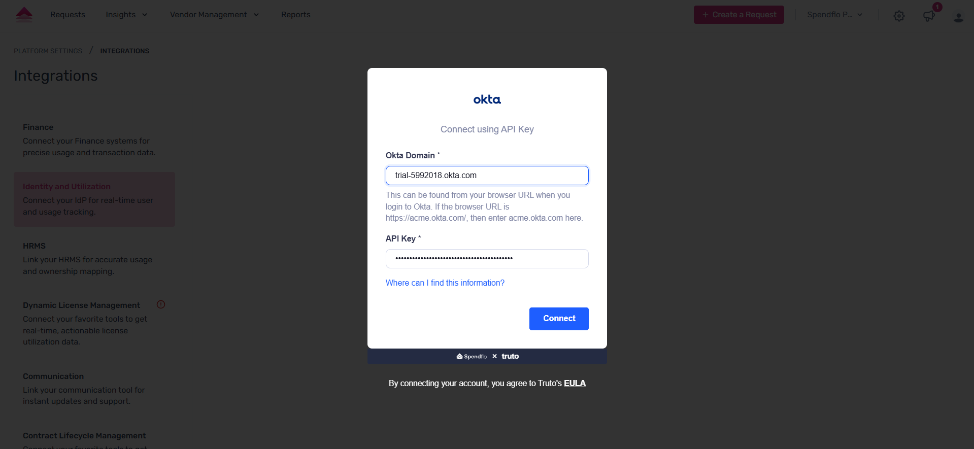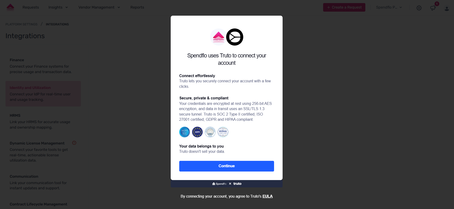 Step 3. Spendflo now uses Truto to securely connect your Okta account. Click on Continue → Connect to complete the connection.
