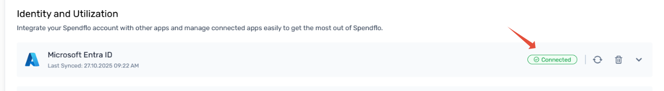 Once the integration is successfully completed, users can find the Microsoft Entra ID app will be displayed with a Connected badge on the same page.