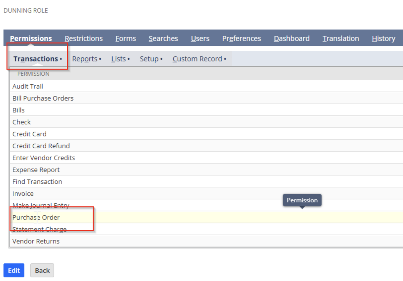 Transactions Permissions