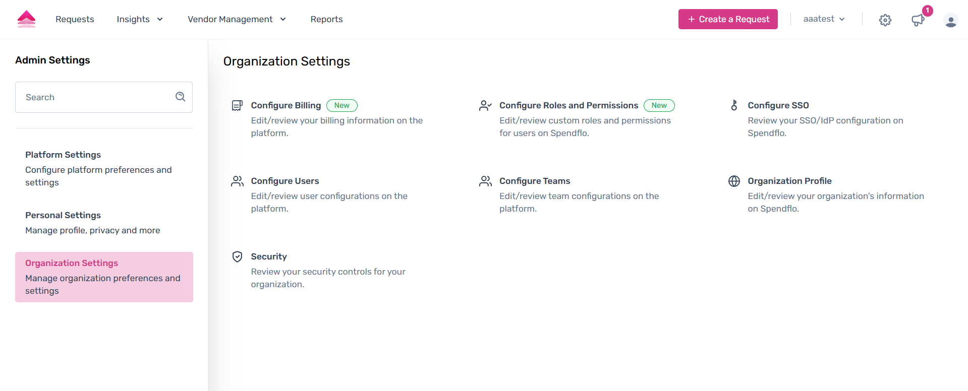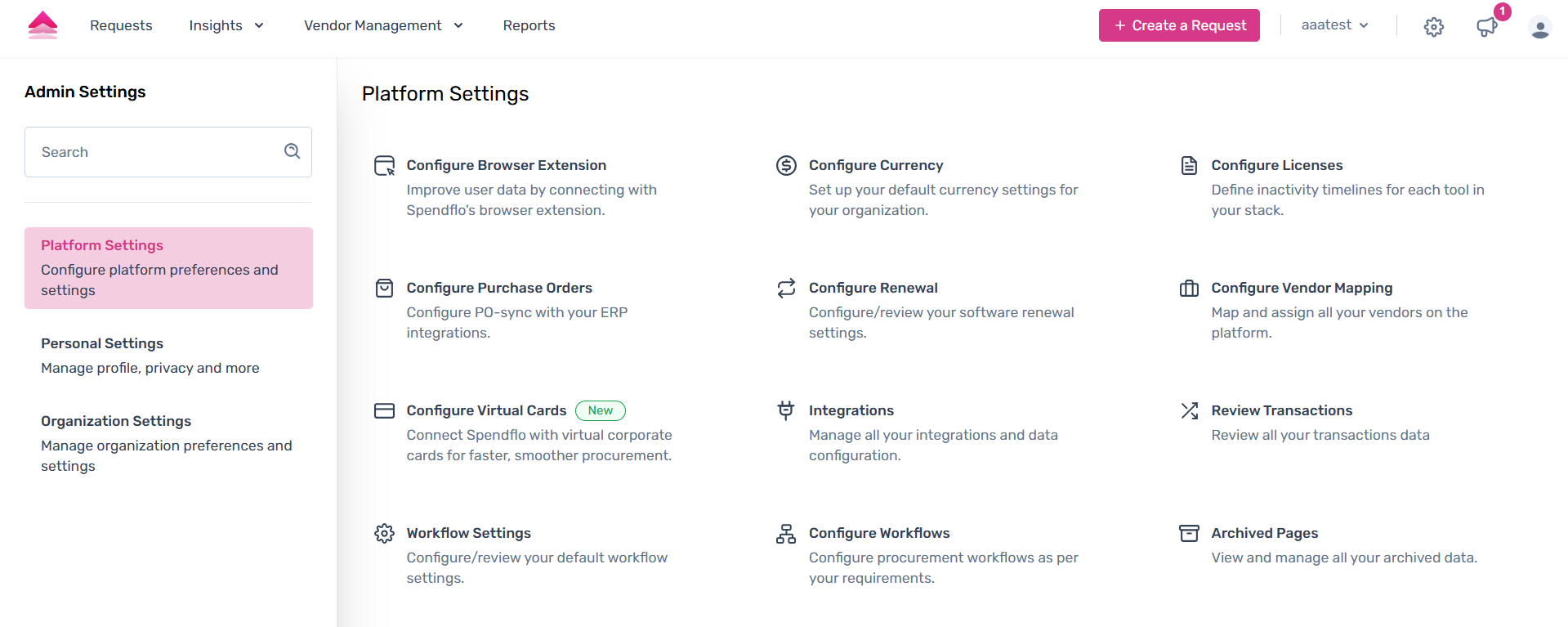 The Settings Page in Spendflo serves as the central hub for configuring and managing platform preferences, ensuring the product aligns seamlessly with your organizational needs. Designed for simplicity and flexibility, the settings page allows admins and users to customize Spendflo features to optimize workflows, notifications, and renewals.