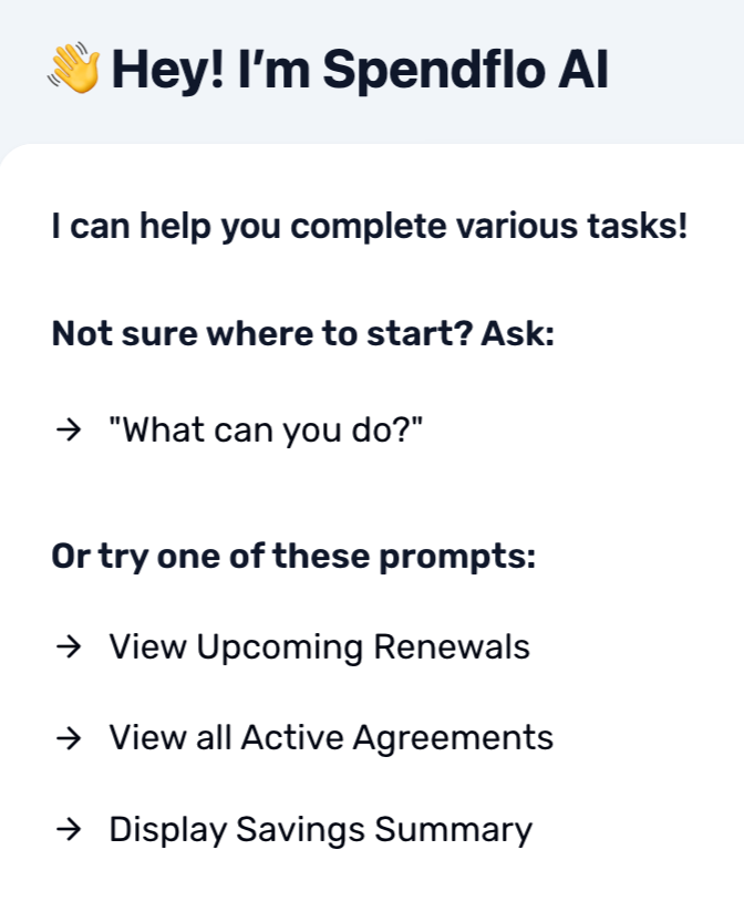 Spendflo Copilot makes it easy to access the information you need through default prompts and custom queries.