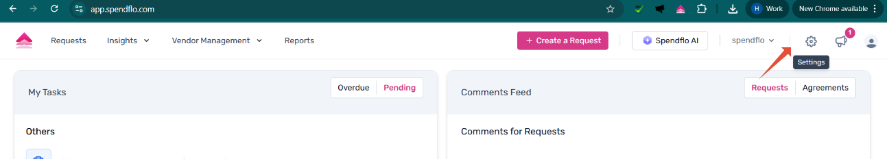Click the Settings icon (⚙️) at the top-right corner of your Spendflo landing page.