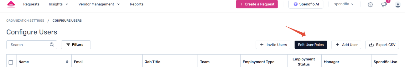 Admins can manage the roles and access levels of users within their organization. This article explains how to update a user’s role in Spendflo.