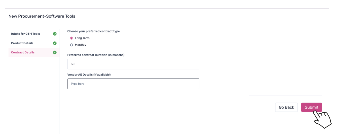 5. Proceed to the Contract Details section. Select your preferred contract type and enter the contract duration in months.