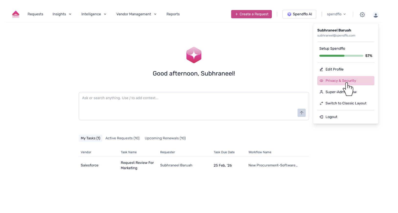 This article explains how to invite new users to the Spendflo platform and manage the roles of existing users, such as Requestors and Admins, to ensure the right level of access for your team members.