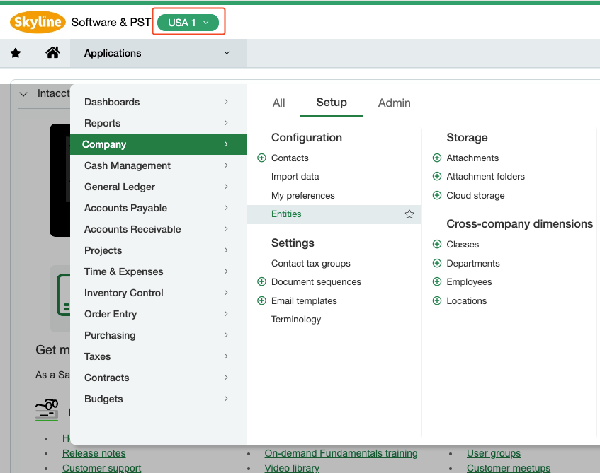 3. Navigate to Company > Setup > Entities