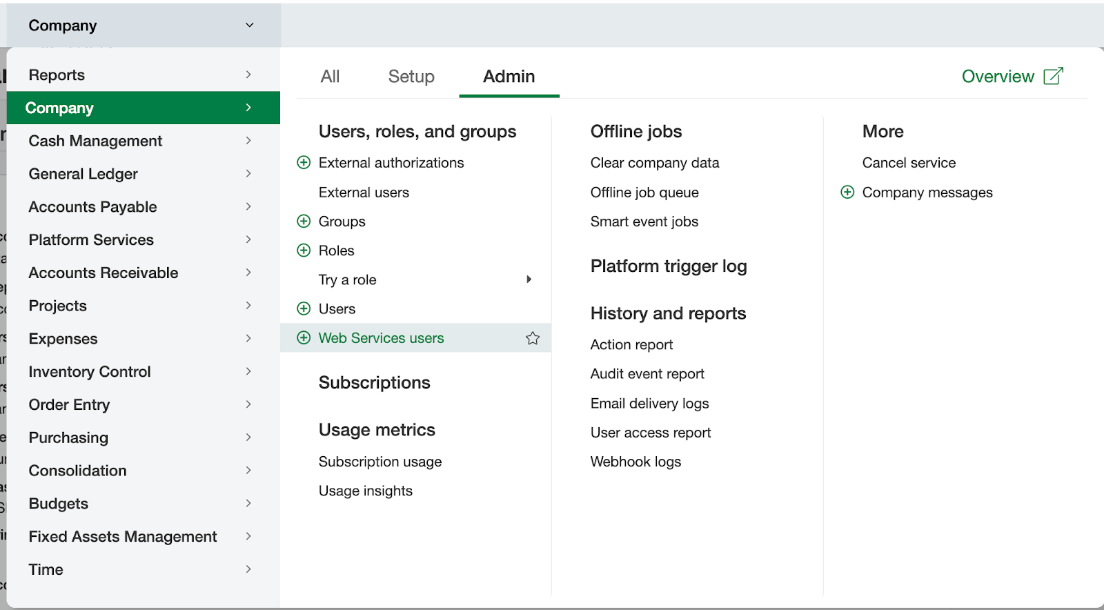 Your Sage Intacct account must have Web Services access enabled.